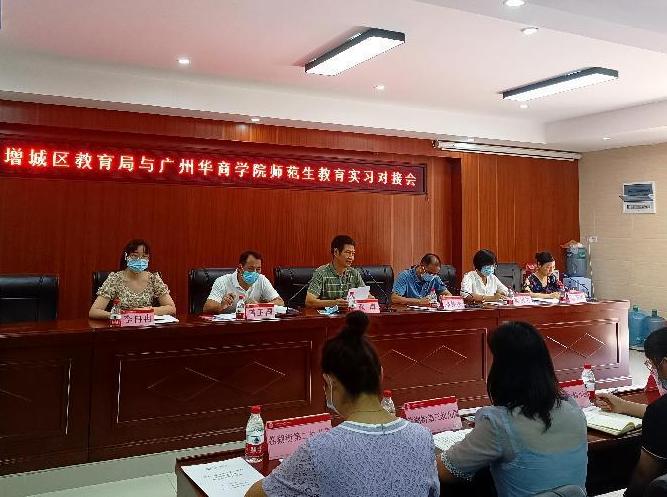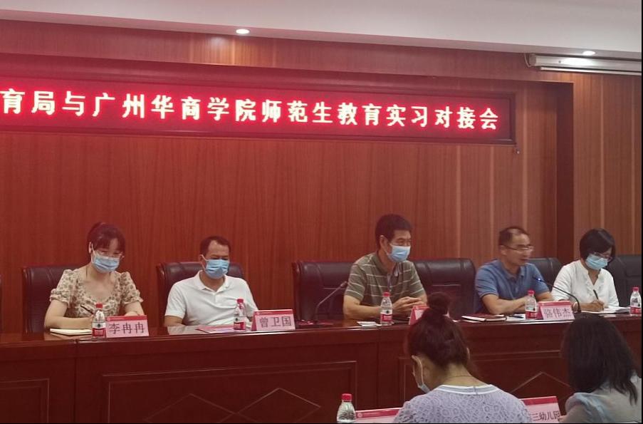 2022年9月2日上午10:00,广州华商学院教师教育学院学前教育专业2019级学生教育实习对接仪式在增城区教师发展中心209会议室举行。参与本次会议的嘉宾有:增城区教育局组织人事科副科长骆伟杰,增江荔湖教育指导中心党委副书记、增江街中心小学党委书记曾卫国,增城区教育局组织人事科陈玉冰老师;广州华商学院教师教育学院张博副院长、教师教育学院行政办公室主任梁思婷老师、教师教育学院学前教育系主任李冉冉老师及增城区各实习单位公办幼儿园园长。