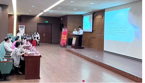 本次决赛的主要内容是:由通过复赛的五个小组分别按照给定的五个主题选取案例进行全英文的案例分析,五个主题和小组出场顺序为:第五队新能源汽车主题小组、第六队绿色环保主题小组、第一队新能源主题小组、第十二队高端制造主题小组、第二队生物医药主题小组。