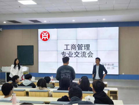 在工商管理系的座谈交流会上,韩主任首先对学生们的学习、生活情况进行了总体了解,紧接着结合物流专业、工商管理专业的发展现状、学科优势、未来前景等向学生们进行了宣导简介,并对学生们目前的学习生活状态和所展现出来的精神面貌给与了鼓励和肯定