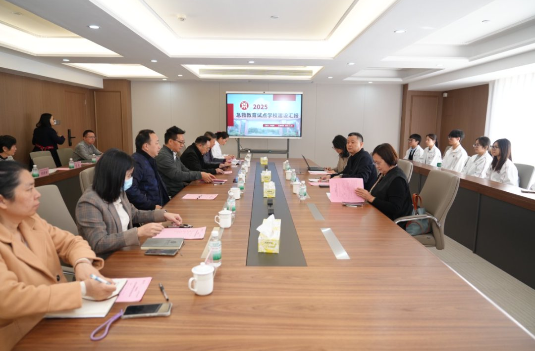 2025年11月28日上午,由省市相关部门专家组成的急救教育试点建设调研指导组(以下简称“指导组”)一行莅临广州华商学院,对我校建设急救教育试点工作进行实地调研与指导。校长助理李远飞、学校办公室主任蒋大锐、健康医学院院长周光雄、副院长翁开源,以及相关部门负责人陪同考察。