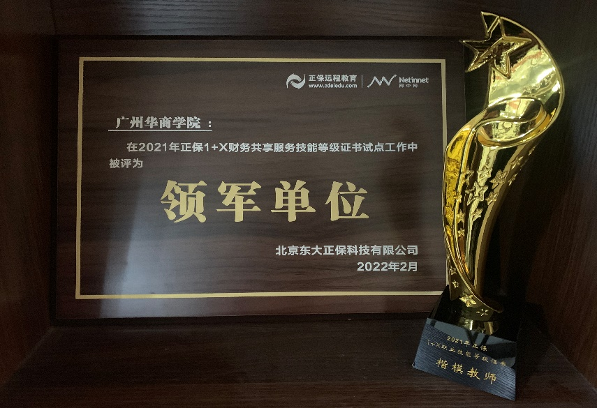 我校高度重视1+X技能等级证书试点工作,我校会计学院在前期积极组织申报试点院校和考核站基础上,组织指导教师与学生参加试点考培工作,形成了以陈美华教授为主导的1+X财务共享服务职业技能等级证书考培教师团队,为推进1+X职业技能等级证书与人才培养融通奠定了坚实的师资基础。我校在2021年正保1+X财务共享服务技能等级证书试点工作喜获佳绩,被授予“领军单位”称号,2021年广东省共有47所院校获奖,我校是唯一获得“领军单位”称号的学校。同时,陈平老师被授予“楷模教师”称号,刘歆郁、周思达两位老师被授予“匠心育人奖”称号,刘倩、石晟瑛和张晓媛三位老师被授予“杰出贡献奖”称号。
