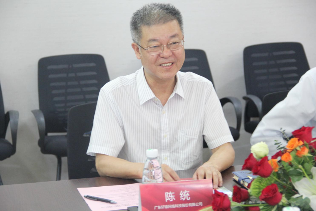随后,郭校长一行在陈统董事长的陪同下,参观了轩辕网络以及位于光宝广州科技园区内的科学城产业学院,并与公司领导层进行了深入交流。广东轩辕网络科技股份有限公司董事长陈统、副总裁李楚威、副总裁伍世梨、销售总监廖灵锋参与座谈交流。