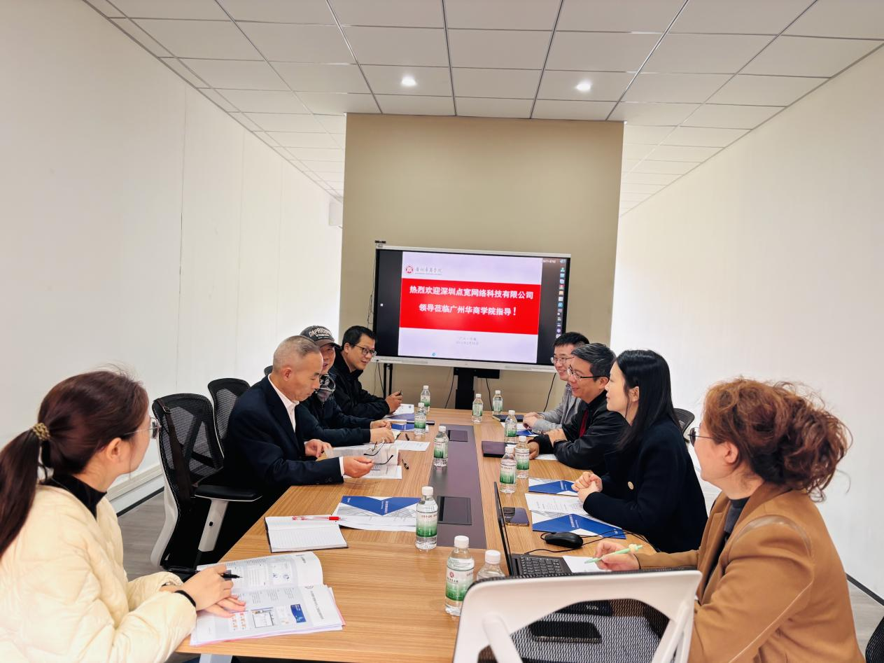 深圳点宽科技有限公司董事长黄嵩、总经理徐辣、金融科技教研部总监毛朝伟、大客户经理刘凯莉,广州华商学院数字金融学院副院长张纯威、李明杰,院长助理荣佳、钟坚毅,金融科技系主任谢一颗,金融工程系副主任廖志芳,数字经济与金融科技产业学院办公室主任赵娟老师出席本次合作会议。