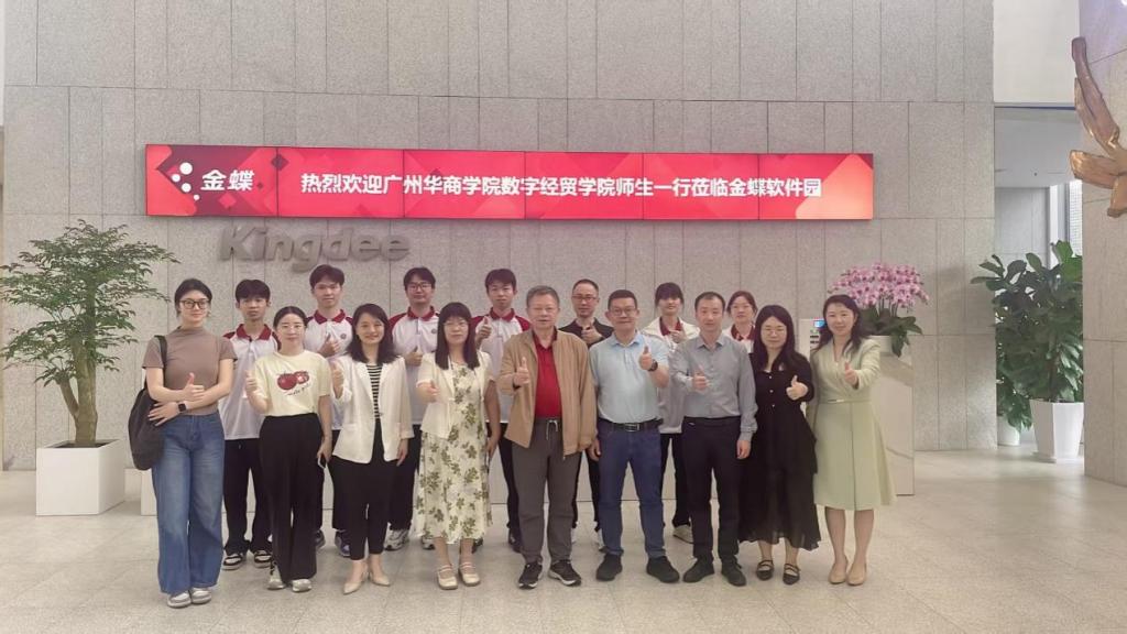 2025年4月25日,数字经贸学院数字经济系组织2024级数字经济专业同学走进金蝶软件(中国)有限公司,开启了一场理论与实践深度融合的学习之旅。数字经贸学院院长李广明教授、院长助理兼数字经济系主任赵慧琴副教授、数字经济系副主任彭珍老师以及武志勇老师、赵若淇老师、路璐老师带领同学们抵达金蝶软件(中国)有限公司。金蝶软件(中国)有限公司培训教育事业部华南区域总监魏佳丹先生、培训教育事业部产品研发服务部副总监郑菁先生、中型企业解决方案部顾问于善韬老师、培训教育事业部产品研发服务部院校顾问曾欣老师、培训教育事业部经理梁惠娜女士、培训教育事业部经理何锦漫女士热情接待了来访师生。