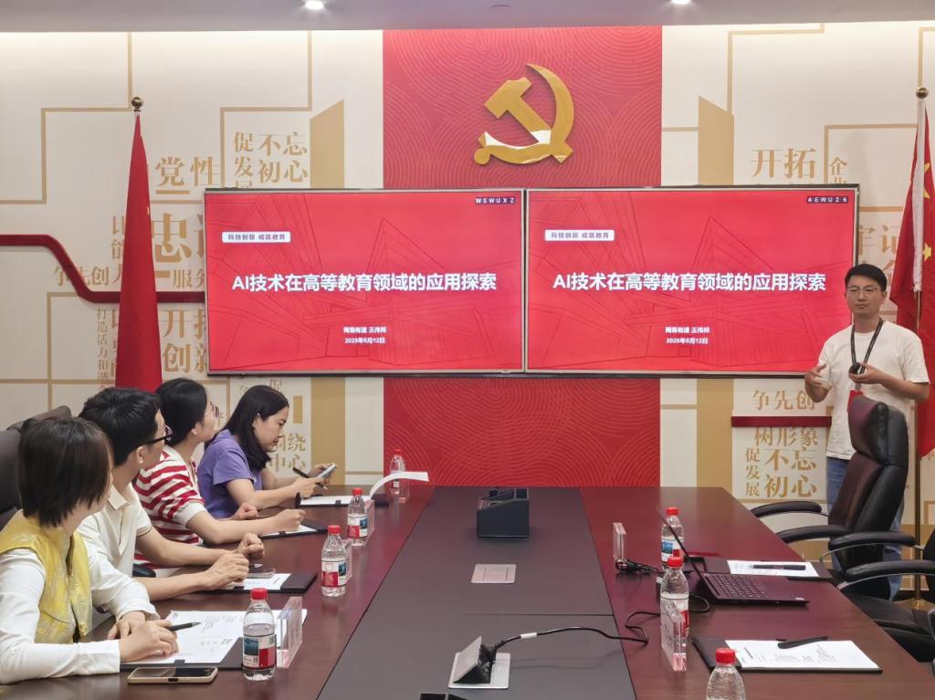 参观结束后,网易有道华南区咨询总监王伟邦带来题为“AI技术在高等教育领域的应用探索”专题讲座。王总监从人工智能的发展历程切入,结合AlphaGo击败围棋冠军、ChatGPT引发全球关注等标志性事件,系统阐释了AI大模型从技术突破到产业化应用的演进逻辑。他重点介绍了网易有道自主研发的“子曰”教育大模型,展示了其在AI数字人、AI问答模型、AI口语教练、AI科研助手等场景中的创新应用——从实时捕捉课堂知识点的智能教学系统,到支持多语种合成的数字人授课技术,全方位呈现了AI如何重构语言学习与教学模式。