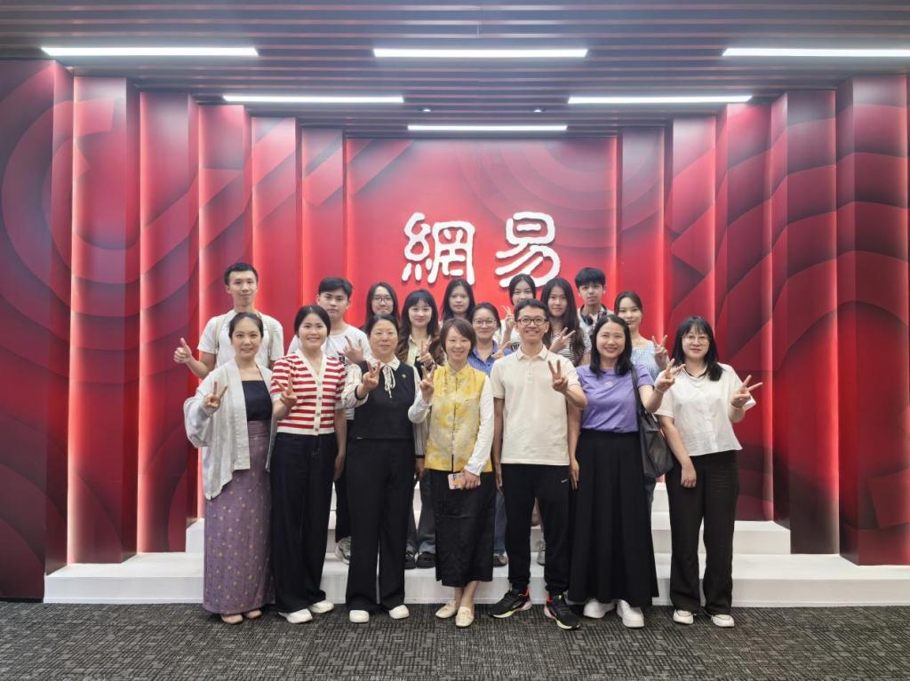 2025年5月12日下午,外国语学院师生前往网易总部开展认知实习暨产教融合基地揭牌仪式。网易有道全国高校数字化负责人李征华、华南区咨询总监王伟邦、华南区总经理助理梁婷之,外国语学院副院长甄玲、副院长何顺发、英语系主任杨润秀、副主任谢瑶、熊梅老师、赵曼翡老师、肖茜老师及英语系实习学生共同参与本次活动。