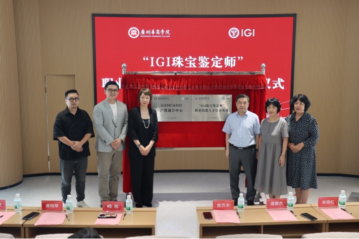 随后,双方为“广州华商学院&IGI产教融合中心”“‘IGI珠宝鉴定师’职业技能人才培养基地”揭牌。焦方太副校长、陈皓总监、唐颖杰总监、唐明琴主任、朱晓红院长、张宪法副院长共同为两个平台揭牌。据悉,这两个平台将聚焦珠宝鉴定、设计、行业前沿技术等领域,为师生提供鉴定课程培训、企业导师资源及行业认证支持,推动教学与产业需求的精准对接。