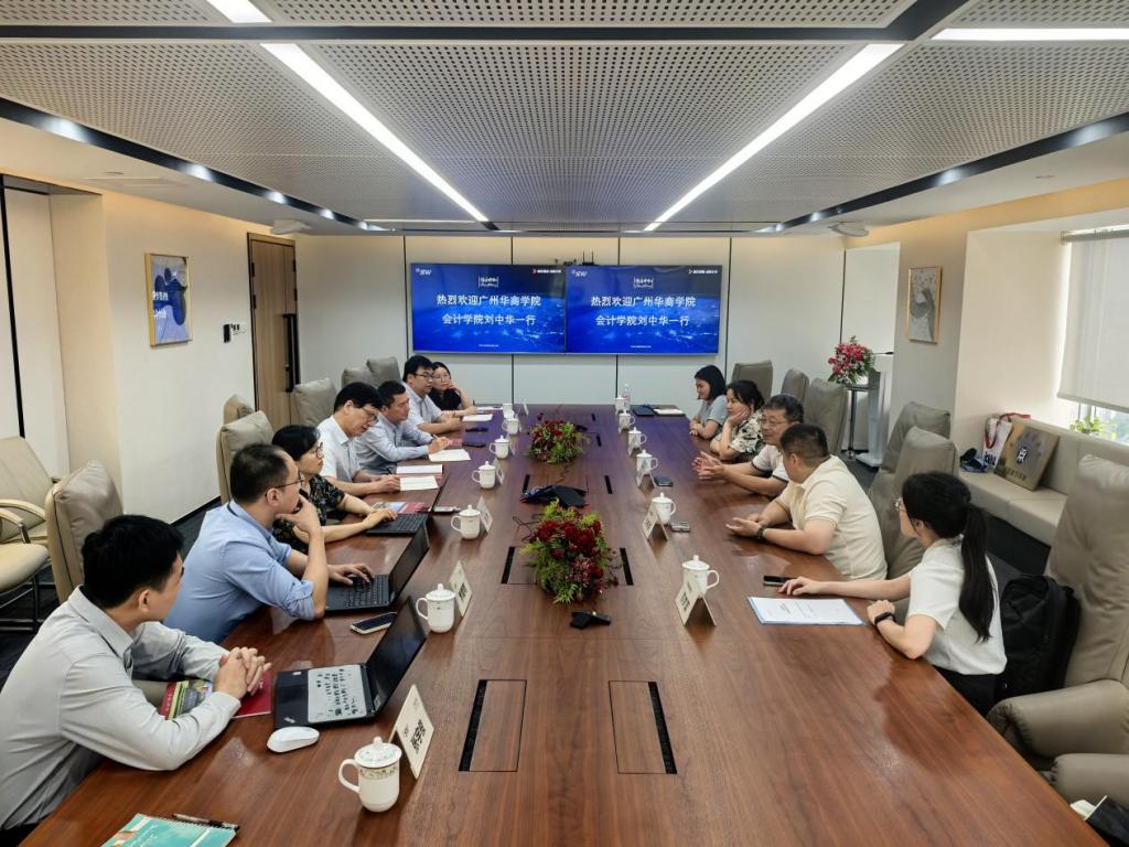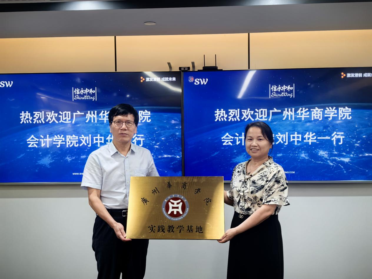 为进一步加强校企合作,推动产教融合,落实实习基地建设工作,2025年7月2日下午,广州华商学院会计学院客座教授刘中华、副院长杨旻、副院长周书域、会计系副主任郭美娣、会计系专任教师苏梦蓝一行5人前往信永中和会计师事务所(特殊普通合伙)广州分所,开展校外实践基地签约及授牌仪式。信永中和会计师事务所(特殊普通合伙)广州分所所长陈锦棋,合伙人贺春海、唐玲,业务经理温靖、罗夏明、张宇俊以及人事经理黄玉珍、人力专员邓婉晶热情接待了来访团队,并出席签约仪式。