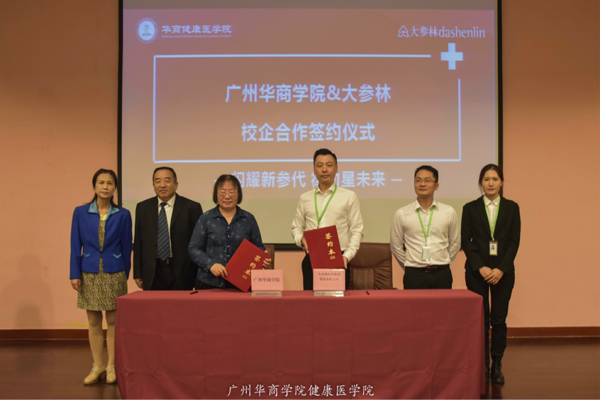 广州华商学院和大参林医药集团股份有限公司在人才培养、学生实习实践、模拟药房建设达成了合作,现场签署了大参林“订单班”校企合作办学协议、广州华商学院健康医学院驻“大参林”实习基地协议以及广州华商学院“大参林”模拟药房协议三份合作协议书。
