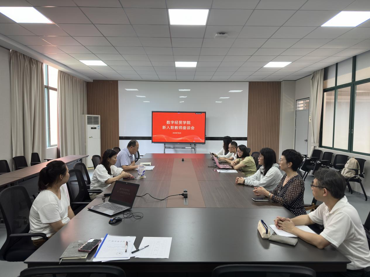 2025年7月2日,数字经贸学院在创新楼518会议室召开新入职教师座谈会,学院党委书记兼副院长李伟、办公室主任黄明亮、行政秘书白鸽、教学秘书曾敏茹及新入职教师代表韩丽姝、谢旻良、武志勇等共同参会,会议由李伟书记主持。