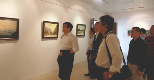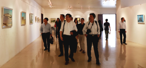 2015年4月25日,中国美术家协会党委副书记、秘书长徐里,河北省文联副主席、省美协主席祁海峰,广东省美协驻会副主席王永等多位知名书画家来到我院考察交流,廖榕就董事长及院领导陪同参观了院图书馆展览厅正在举行的《物·悟——柒人联展》。