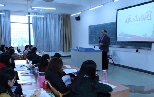 按照学院《形势与政策》课程教学的进度安排,苏宁书记以“十八届四中全会精神”作为授课主题。首先,苏书记给同学们介绍了十八届四中全会的背景和概况,传达了十八届四中全会会议精神,并且就十八届四中全会的部分议题进行互动交流;其次,苏书记与同学们一起回顾我国社会主义法治进程的各个阶段,阐述了依法治国的深刻内涵,并结合生活中的实际案例,让同学们对法治精神有更加深刻的领悟。