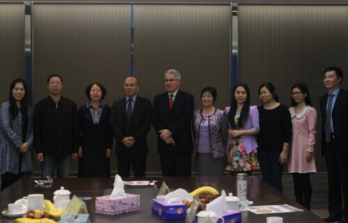 2014年11月10日,澳大利亚维多利亚大学代表国际合作部总监Mr.Rhys Williams、国际部合作部经理Mr.George Yue和中国澳大利亚商会华南区代表李强会长等一行来访我院。我院董事长廖榕就、副院长廖伊曼、教务处处长李建浔、经济系主任王德高、经济学主任马玉珍、华商合作交流中心主任刘芳芳、院办副主任杨宪等热情接待了来访嘉宾。双方就中澳合作项目进行了探讨,会议在愉快的气氛中结束。会后双方约定加强联系,共同努力实现合作项目。(文/陈维)