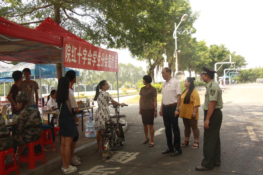 在新生训练场地,王锦秀副院长向承训官兵、辅导员老师和参训学生详细询问了军训情况,对部队官兵的辛苦工作表示衷心感谢,对坚守岗位的新生辅导员和刻苦训练的学生表示亲切慰问。