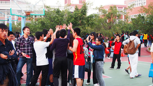 现场12国贸3班在欢呼夺冠中