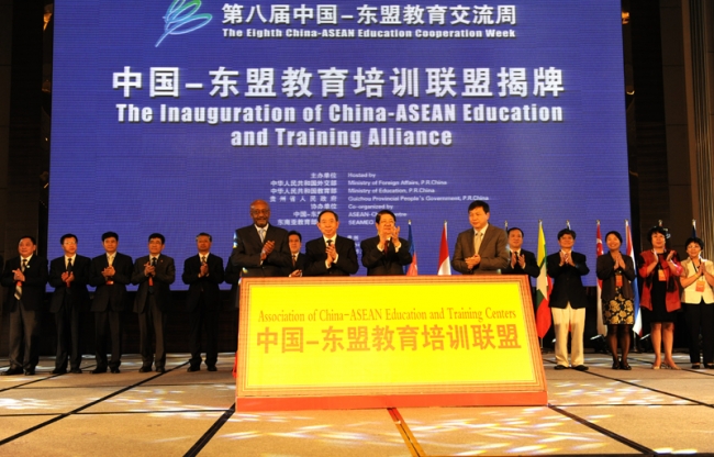 2015年8月3日,以“互学互鉴福祉未来”为主题的第八届中国—东盟教育交流周在贵阳隆重开幕。教育部郝平副部长主持开幕式,中共中央政治局委员、国务院刘延东副总理寄语祝贺,柬埔寨索安副首相致辞,贵阳省陈敏尔省委书记、省长致欢迎辞,教育部袁贵仁部长宣读刘延东寄语并作主旨演讲,联合国教科文组织恩吉达副总干事、外交部钱洪山部长助理致辞,联合国教科文组织博科娃总干事视频致辞,全国政协刘晓峰副主席宣布开幕。我院代表教务处金伟娇副处长、华商合作交流中心刘芳芳主任一行参加了盛大的开幕式;开幕式后我院代表参观了东盟留学展。